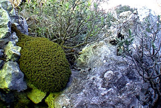 Es fácil perder de vista lo pequeño, lo cercano, la belleza de la punta del zapato, ante la inmensidad de la montaña. Especialmente en la Cresta de la Bernia. Tanto cielo, tanto mar, tanto valle, tanta montaña, tanto terreno conocido como desconocido... Pero si dejas caer la vista te ciegas igualmente con los pequeños mundos que se organizan en un retazo de musgo que busca el norte para ser feliz. Efectivamente, la belleza está en todas partes...